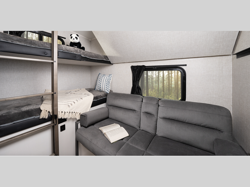 Sleeps 8 Slides 1 Length 34 ft 8 in Ext Width 8 ft Ext Height 13 ft Int Height 8 ft 5 in Interior Color Calli Linen Hitch Weight 1770 lbs GVWR 10750 lbs Dry Weight 8995 lbs Cargo Capacity 1755 lbs Fresh Water Capacity 52 gals Grey Water Capacity 82 gals Black Water Capacity 45 gals Tire Size ST225/75R15E Furnace BTU 35000 btu Number Of Bunks 2 Available Beds Olympic Queen Refrigerator Type GE 12V Refrigerator Size 10 cu ft Shower Size 30" x 36" Number of Awnings 1 LP Tank Capacity 30 lbs Water Heater Type On Demand AC BTU 15000 btu TV Info LR 4K Ultra LED HD Smart TV Awning Info 19' Electric w/Integrated LED Lights Axle Count 2 Washer/Dryer Available Yes Number of LP Tanks 2 Shower Type Standard Electrical Service 50 amp Similar Floorplans
