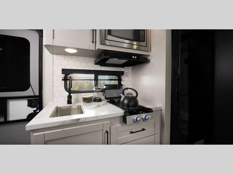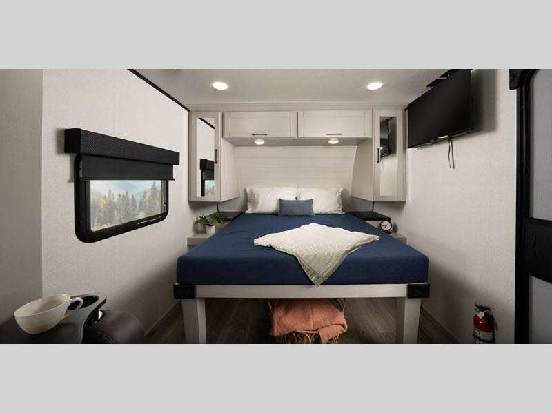 Sleeps 4 Slides 1 Length 23 ft Ext Width 8 ft Ext Height 10 ft 9 in Int Height 6 ft 6 in Interior Color Dune Gray Hitch Weight 595 lbs GVWR 5700 lbs Dry Weight 4395 lbs Cargo Capacity 1305 lbs Fresh Water Capacity 55 gals Grey Water Capacity 38 gals Black Water Capacity 38 gals Tire Size ST225/75R15E Furnace BTU 19000 btu Number Of Bunks 2 Available Beds Murphy Refrigerator Type 12V Refrigerator Size 11 cu ft Convection Cooking Yes Cooktop Burners 2 Number of Awnings 1 LP Tank Capacity 20 lbs Water Heater Type On Demand AC BTU 5000 btu TV Info LED Smart TV Awning Info 15' Max-Length Power w/LED Light Axle Count 1 Number of LP Tanks 2 Shower Type Standard Solar Wattage 200 watts Similar Floorplans