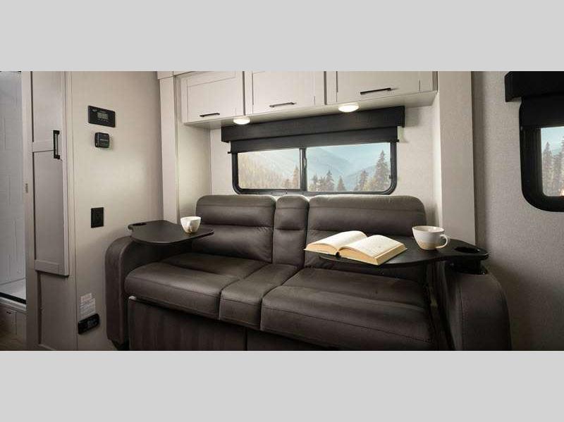 Additional stand-out features include a Rock Solid jacks helps you achieve a level trailer with less effort and time. You algo have an on demand water heater, and a Magnum Truss roof system, tested to withstand 4,500 lbs! Inside, you'll be met with residential-style seamless countertops throughout, spacious handcrafted, hardwood door/drawer fronts, and residential vinyl flooring throughout that will be easy to keep clean.