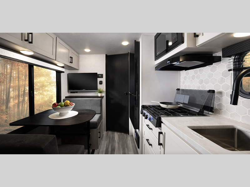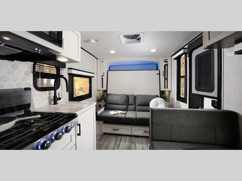 Sleeps 3 Length 20 ft 10 in Ext Width 7 ft 6 in Ext Height 10 ft 5 in Int Height 6 ft 6 in Interior Color Vintage Farmhouse Hitch Weight 490 lbs GVWR 4995 lbs Dry Weight 3840 lbs Cargo Capacity 1155 lbs Fresh Water Capacity 55 gals Grey Water Capacity 30 gals Black Water Capacity 30 gals Tire Size LT225/75R16E Furnace BTU 19000 btu Available Beds Murphy Refrigerator Type 12V Refrigerator Size 11 cu ft Cooktop Burners 3 Number of Awnings 1 LP Tank Capacity 20 lbs Water Heater Type Tankless On Demand AC BTU 13500 btu TV Info LR 32" 12V LED TV Awning Info 13' Max-Length Power w/LED Light Axle Count 1 Number of LP Tanks 2 Shower Type Tub/Shower Combo Electrical Service 30 amp Similar Floorplans