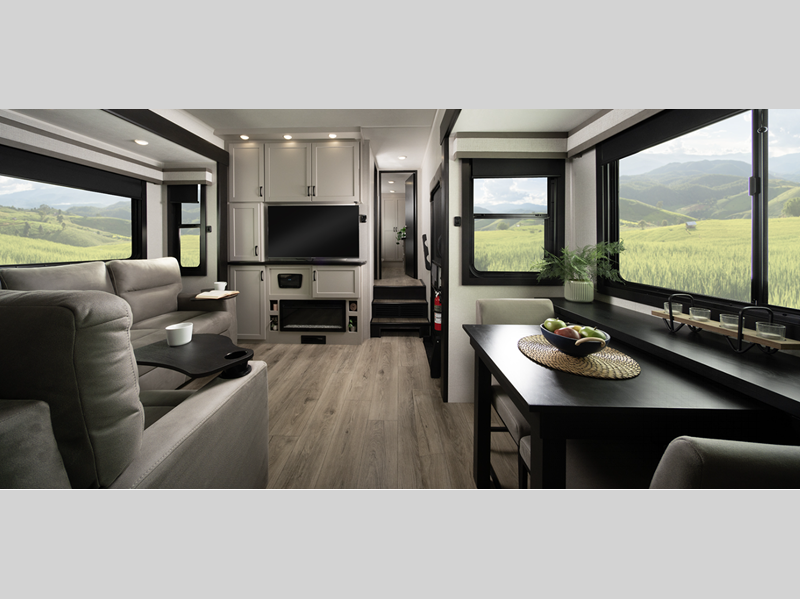 - Stronghold VBL™ aluminum-framed and vacuum-bond laminated gel-coated fiberglass exterior walls and slide room end walls